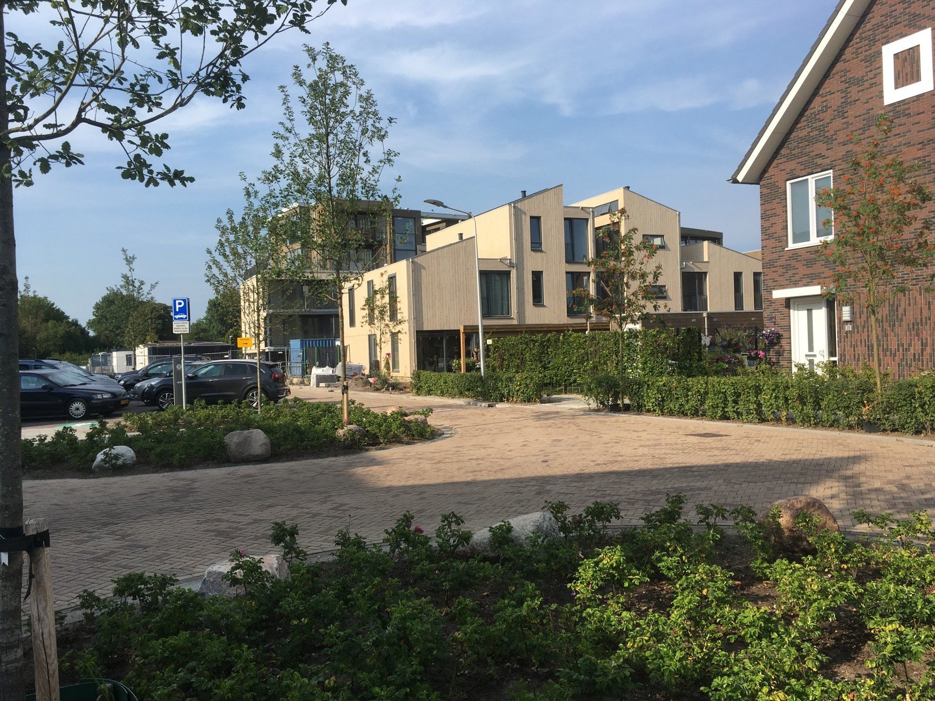 Het parkeren is opgelost door half verdiepte parkeerplaatsen te realiseren onder de appartementen.